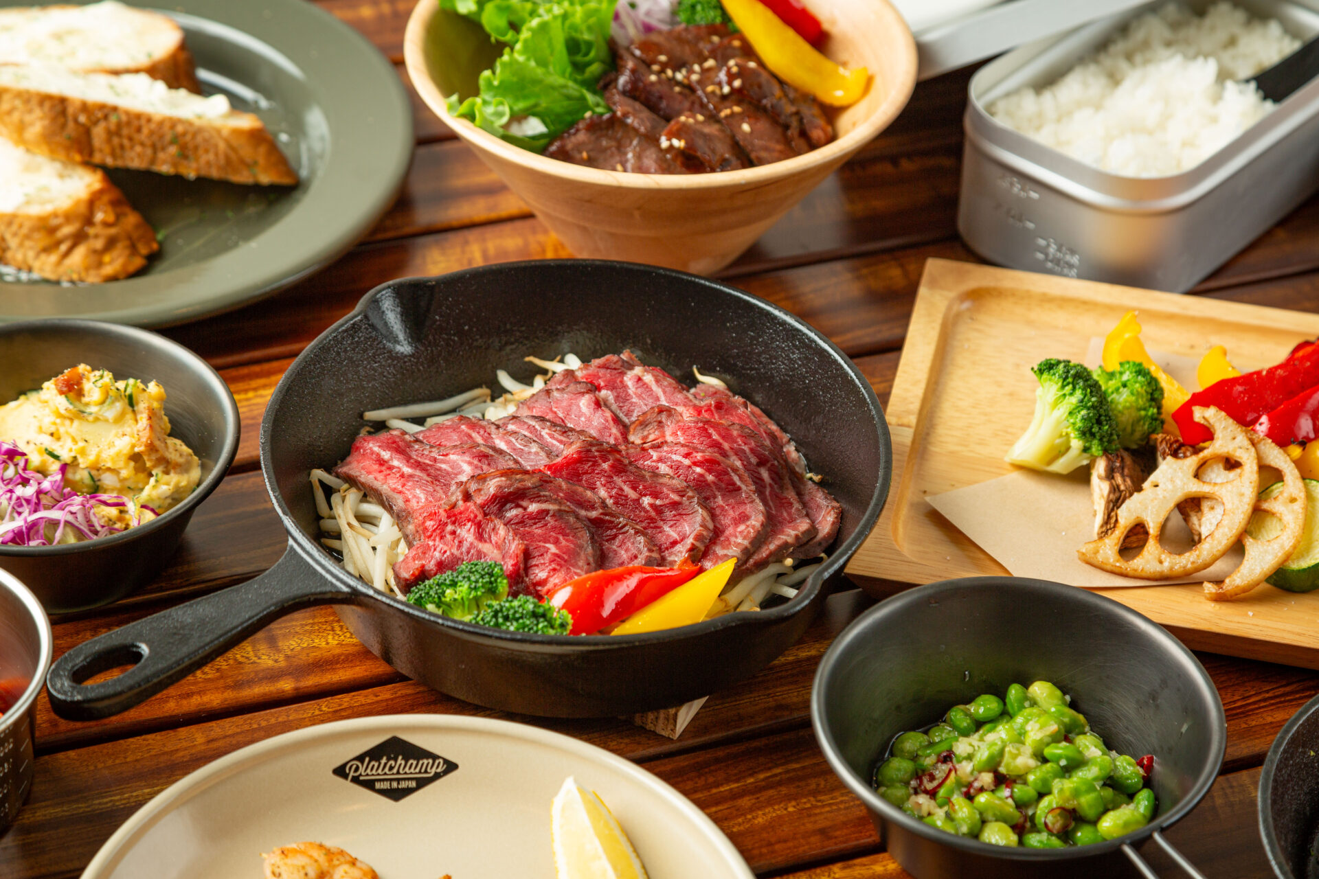 ジューシーなステーキ肉や焼き野菜、燻製メニューなど多彩な料理をご用意!